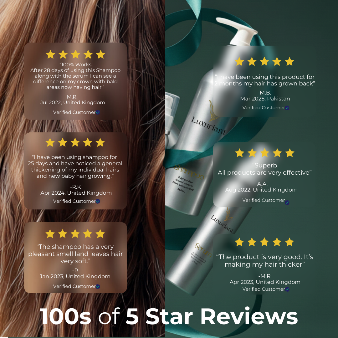 Have you ever looked at the back of a shampoo bottle and thought, what on earth is all this? You’re not alone. More and more people are becoming conscious of what they put on their bodies — and hair care is no exception. That’s where plant-based hair products come in. But what exactly are they? Are they genuinely better for your hair? And how do they compare to traditional products when it comes to results? Let’s take a look at what plant-based shampoos and serums really offer, and why they might just be the best thing you can do for your hair — especially if you’re dealing with thinning, dryness or scalp sensitivity. 🌿 What Are Plant-Based Hair Products? Put simply, plant-based hair products are made using ingredients derived from nature — think roots, herbs, fruits, flowers and essential oils — instead of harsh synthetic chemicals. They often avoid common irritants like: Sulphates (which strip natural oils) Parabens (used as preservatives) Silicones (which can build up on the scalp) Synthetic fragrances and dyes Instead, these products use gentle plant-derived alternatives that nourish the scalp, support healthy growth and clean without stripping. Some popular ingredients include: Ginger root – boosts circulation and soothes inflammation Green tea – antioxidant-rich and scalp balancing Aloe vera – ultra-hydrating and soothing Ginseng – known for strengthening follicles and stimulating growth 💆♂️ Are Plant-Based Products Actually Better for Your Hair? For many people, yes — and here's why. 1. Gentle on the Scalp Conventional shampoos often rely on sulphates for that satisfying lather, but they can also strip your scalp of its natural oils. This can leave your skin dry, irritated, and prone to flaking. Plant-based shampoos use mild, natural cleansers that clean effectively while maintaining your scalp’s natural balance. 2. Better for Sensitive Skin If you’ve ever dealt with itching or redness after washing your hair, artificial fragrances and preservatives might be the cause. Plant-based products typically avoid these irritants, making them ideal for people with sensitive or reactive skin. 3. Support Long-Term Hair Health Rather than masking issues, natural ingredients like ginger, ginseng and green tea nourish the scalp and strengthen hair at the root — which can help reduce shedding and support long-term growth. 🧴 What's the Deal with Vegan Hair Products? You’ll often see “vegan” and “plant-based” used together, but they’re slightly different: Vegan hair products contain no animal-derived ingredients (like keratin, beeswax or lanolin) They are usually cruelty-free, meaning not tested on animals Many vegan products are also plant-based, but it’s always good to check the label If you're someone who prefers ethical, animal-friendly options, vegan hair care is an excellent choice — especially when paired with natural, plant-powered formulas. 🌱 Are Vegan and Plant-Based Products Really Better? In many cases, yes. Here’s a quick comparison: Benefit Plant-Based/Vegan Products Traditional Products Ingredients Natural, botanical Synthetic, often harsh Scalp Health Nourishing and gentle May cause irritation Sustainability Eco-friendly and ethical Often higher environmental impact Transparency Clear labelling and purpose Ingredients often unclear That said, not all plant-based shampoos are equal — some still contain synthetic additives. The key is choosing a well-formulated product that combines clean ingredients with visible results. 🔍 What Should You Look for in a Good Plant-Based Shampoo? When shopping for natural hair products, pay attention to: Ingredient list – Look for botanical extracts near the top Free from sulphates, silicones and parabens Balanced pH – Ideal range is 4.5–5.5 for scalp health Natural fragrance or essential oils, rather than artificial scents Vegan and cruelty-free certifications if that’s important to you And of course, results matter too — which brings us to a set worth trying. 🌟 Try Luxuriant’s Complete Hair Growth Shampoo Set If you’re ready to embrace the benefits of plant-based hair care, the Luxuriant Hair Growth Shampoo Set is the perfect place to start. This powerful set includes: 1 revitalising shampoo infused with 16 plant-based ingredients, including ginger root, ginseng, green tea, and licorice root 3 advanced serums formulated to stimulate the scalp, reduce thinning, and support fuller, stronger hair Together, the shampoo and serums create a complete plant-powered routine designed for men and women dealing with hair fall, thinning patches, or a tired, unbalanced scalp. Why Luxuriant Stands Out: 100% vegan and plant-based No sulphates, parabens, silicones or harsh fillers Gentle enough for daily use Developed using proven Asian botanicals blended with modern hair science Whether you’re noticing early signs of hair thinning or just want to switch to a gentler, more effective hair routine, Luxuriant’s plant based shampoo and serum set delivers visible results — the natural way. We’re so confident you’ll love your results, we offer a 90-day money-back guarantee. See the difference — or your money back, no questions asked ✨ Final Thoughts Plant-based hair care isn’t just a passing trend — it’s a return to what works in harmony with your body. Clean, natural ingredients can nourish your scalp, protect your hair from damage, and support a healthier hair journey overall. And with a thoughtfully formulated set like Luxuriant’s Natural Shampoo For Hair Growth Set, you're not only making a more mindful choice — you're choosing effective care rooted in nature. Ready to make the switch? Treat your hair to the natural care it deserves with Luxuriant.