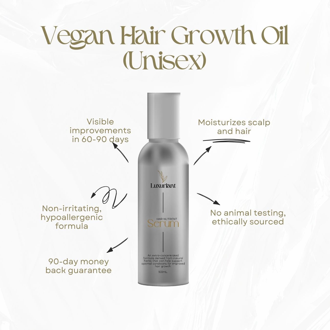 Experience Luxuriant's Vegan Hair Growth Oil, a natural, cruelty-free